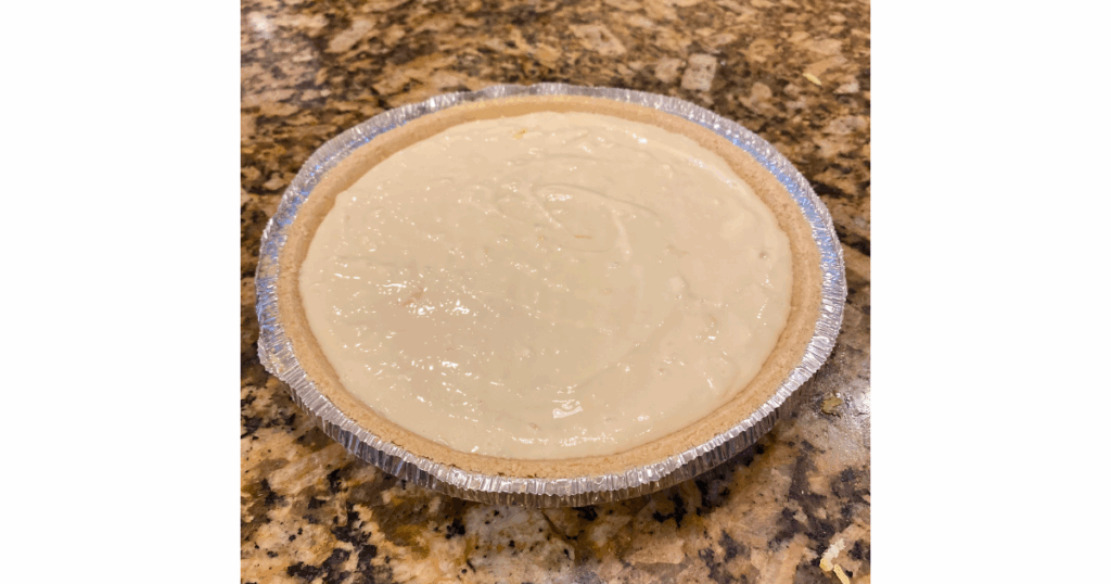 - Pour the filling into the graham cracker crust and smooth the top with a spatula.